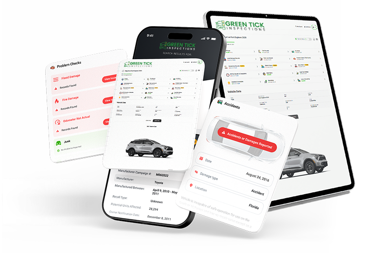 GreenTick Inspections provides detailed, verified online vehicle history reports for car buyers, sellers, and dealers across the United States. Our reports include accident history, title records, recalls, and more — helping you make informed decisions before buying or selling a vehicle.